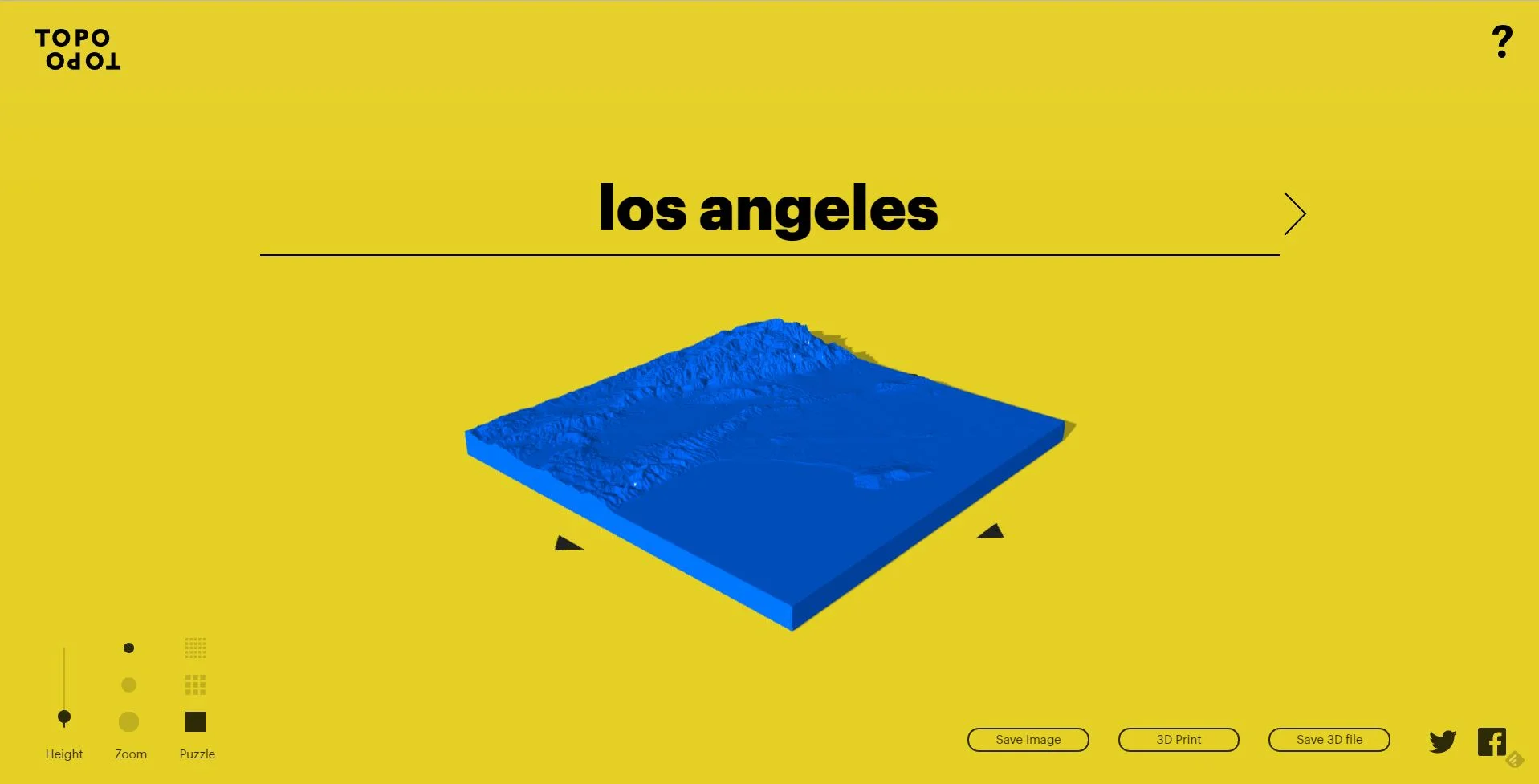 While there are many ways to create digital terrain models, TopoTopo by HUSH offers a simple, searchable website interface which converts globally available 1 arc-second, or about 30 meters (98 feet) resolution STRM data into a ready to print 5" square object file (3D model) that can be opened in modeling programs like Rhino and exported to a 3D printing software.