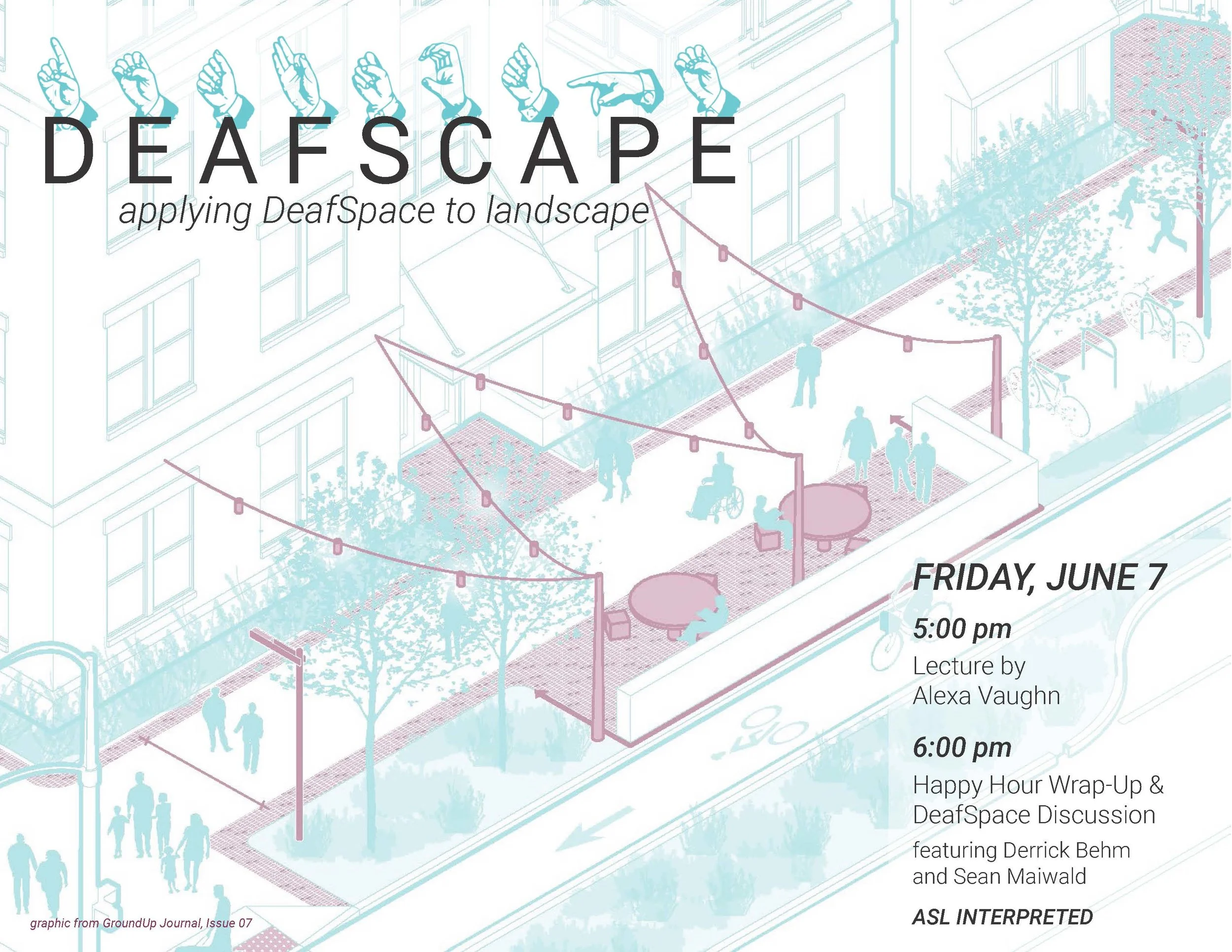 Related: see Alexa’s paper “DeafScape: Applying DeafSpace to Landscape” in Ground Up: Journal from the Department of Landscape Architecture and Planning UC Berkeley