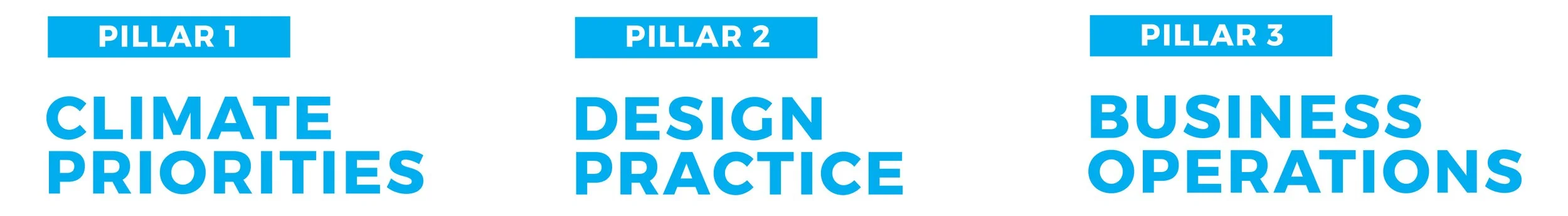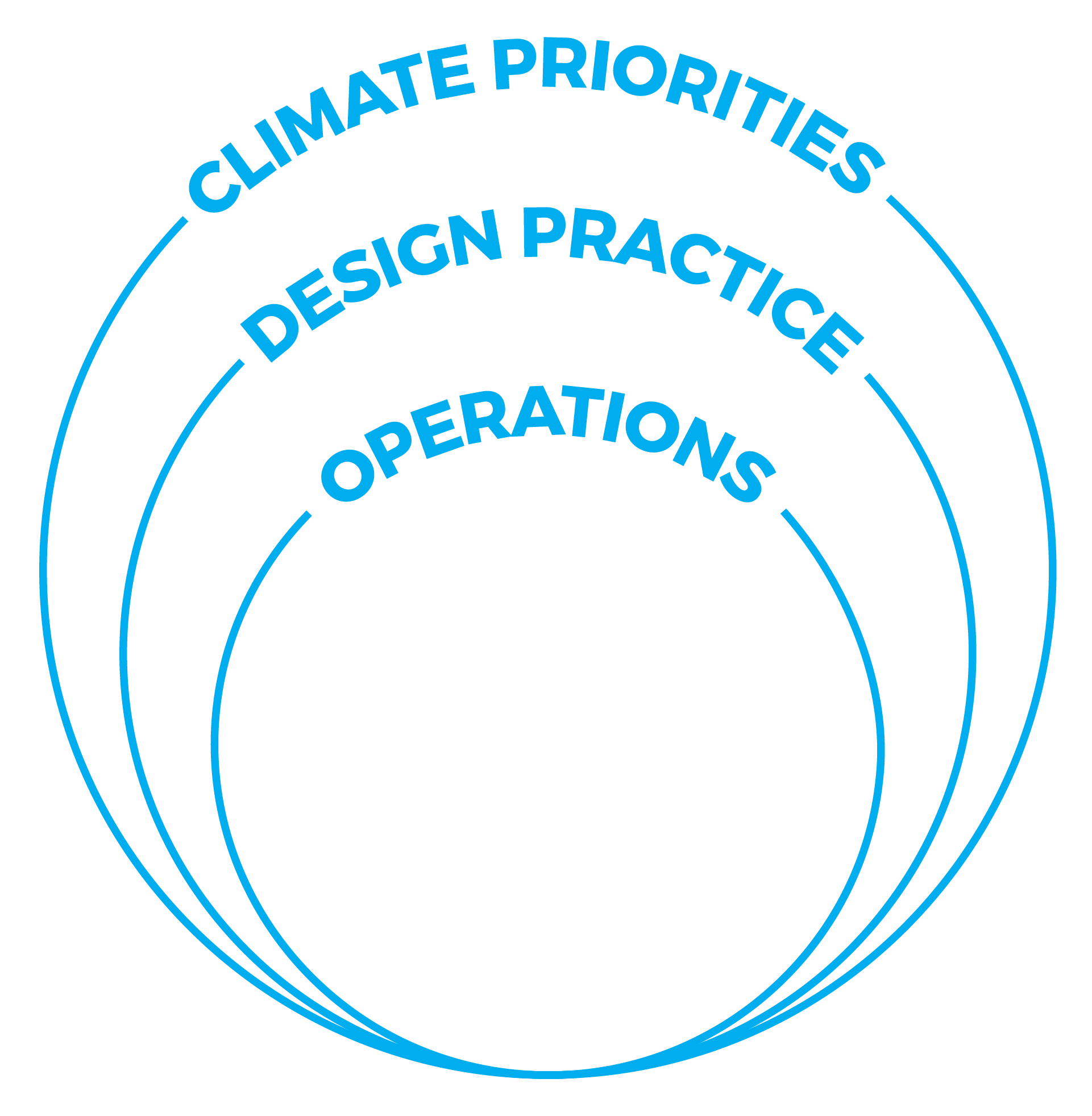 OLIN’s Climate Action Plan is organized into three (3) pillars: Climate Priorities, Design Practice, and Business Operations. This reflects the way we approach our work, beginning with our mission to create spaces and communities that enhance life, working with like-minded clients and thought partners, and integrating a holistic approach to climate into our designs. Operations support our practice and ensure that our professional lives align with our mission and values.